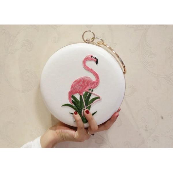 Trendy Cute Flamingos Embroidered Evening Bag With Sparkle Crystal Handle Images |
